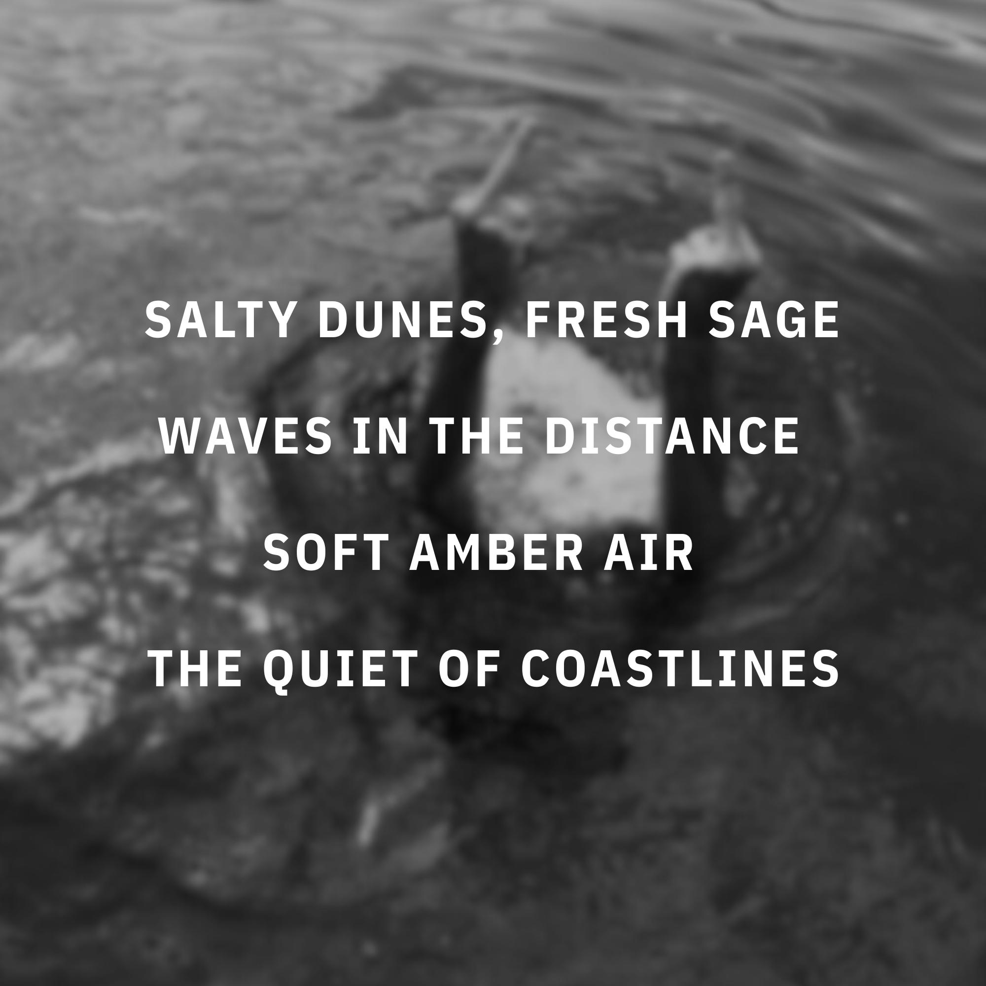 sea spray, sage, fir needles, amber, oudh, salt-damp skin